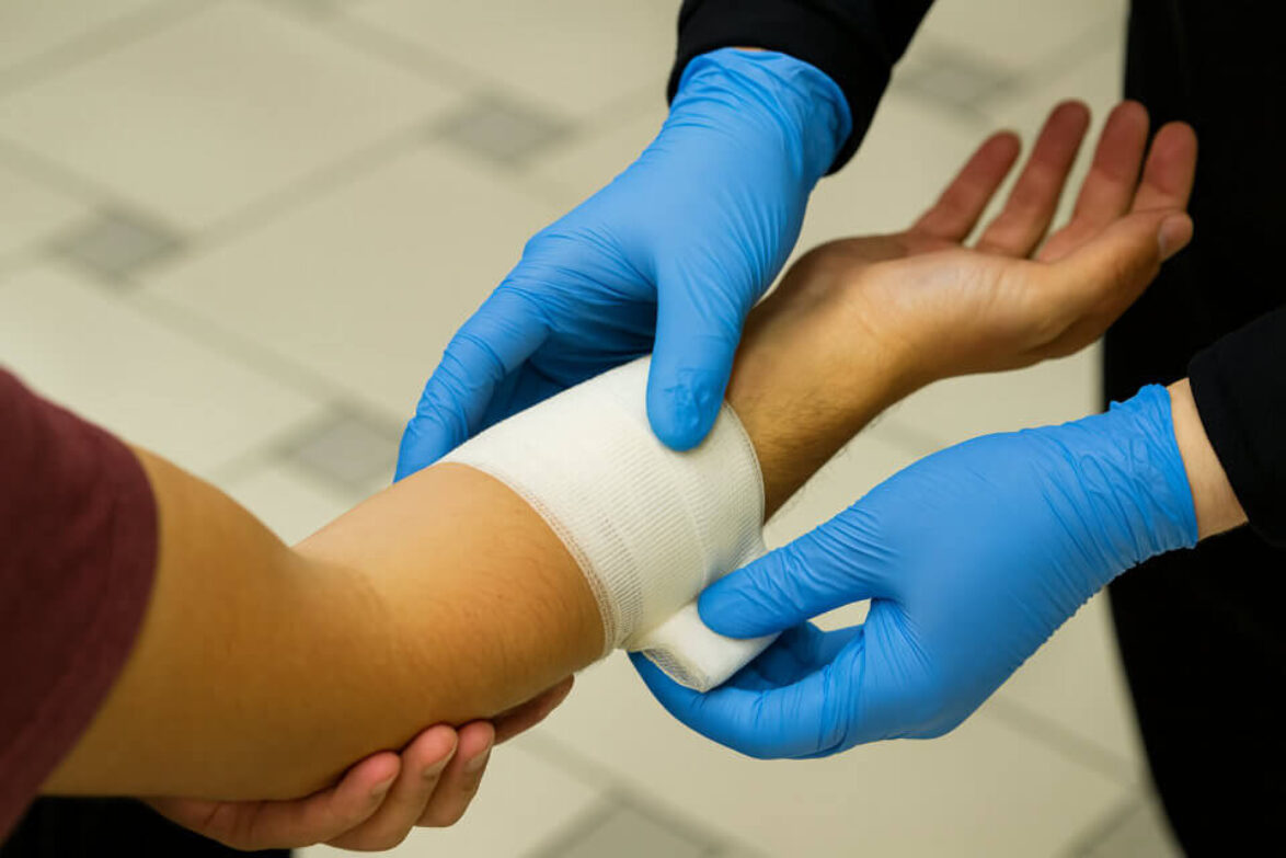• Apply direct pressure to the wound. If there is an embedded object, place pressure around the wound.